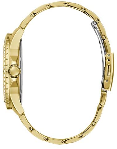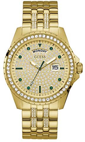 Guess GW0218G2 Men's and Women's Gold Plated Stainless Steel Watch with CZ Bezel and Dial Indices marked with green zirconia.