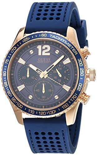 Brand Name GUESS Model number W0971G3 Part Number W0971G3 Model Year 2018 Item Shape Round Case material Stainless Steel Band Material Silicone Band width 22 millimetres Band Color Blue Dial color Blue Special features Stop Watch Item weight 200 Grams Movement Quartz Water resistant depth 10.00 bar