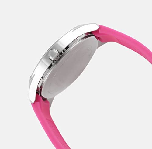 Product DescriptionThis Mens Watch features a stone set silver tone stainless steel case. Multi-colour sparkly dial, and a pink silicone strap.Box ContainsWatch, Presentation box, Watch Cushion, Guarantee, Manuals and water resistant usage guide