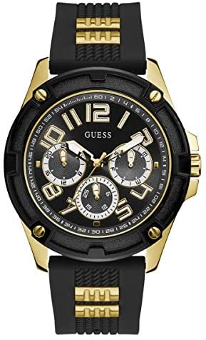 Brand Name GUESS Model number GW0051G2 Part Number GW0051G2 Model Year 2020 Item Shape Round Case material Stainless Steel Band Material Silicone Band length Mens Standard Band width 21.5 millimetres Band Color Black Dial color Black Bezel material Stainless Steel Special features Chronograph Item weight 113 Grams Movement Analog Water resistant depth 5.00 bar