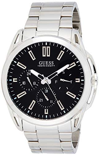 Brand Name GUESS Model number W1176G2 Part Number W1176G2 Model Year 2018 Item Shape Round Case material Stainless Steel Band Material Stainless Steel Band length Mens Standard Band width 22 millimetres Band Color Silver Dial color Black Bezel material Stainless Steel Special features 24-hour Display, Luminous Hands Item weight 150 Grams Movement Quartz