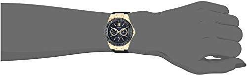 Style meets function with this gold-tone multifunction watch, featuring a black silicone strap and logo detail. Day and date dials. Gold-tone case.