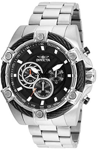 Product DescriptionThis Invicta men's watch is part of the bolt collection. This Invicta 25512 has a 52 millimeters stainless steel case with a black dial. This model is powered by an accurate quartz movement. The Invicta bolt watch has a 26 millimeters stainless steel band.This Invicta watch is protected by flame fusion glass. The stainless steel watch is 10 bars water resistant and includes a yellow Invicta box and an instruction manual.Box ContainsWatch, Presentation box, Watch Cushion, Guarantee