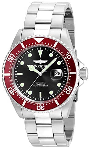 Product DescriptionThis Invicta men's watch is part of the pro diver collection. This Invicta 22020 has a 43 millimeters stainless steel case with a black dial. This model is powered by an accurate quartz movement. The Invicta pro diver watch has a 22 millimeters stainless steel band.This Invicta watch is protected by flame fusion glass. The stainless steel watch is 20 bars water resistant and includes a yellow Invicta box and an instruction manual.Box ContainsWatch, Presentation box, Watch Cushion, 1 year extra free warranty card, instruction manual
