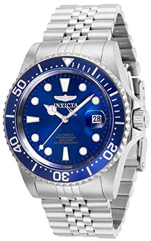 This Invicta men's watch is part of the pro diver collection. This Invicta 30092 has a 42 millimeters stainless steel case with a blue dial. This model is powered by an accurate automatic movement. The Invicta pro diver watch has a 22 millimeters stainless steel band.This Invicta watch is protected by mineralglass. The stainless steel watch is 20 bars water resistant and includes a yellow Invicta box and an instruction manual.