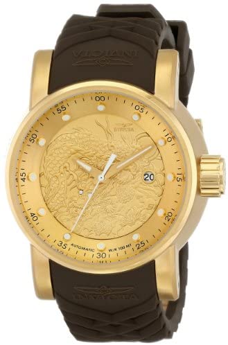 Brand Name INVICTA Model number 12790 Part Number 12790 Model Year 2011 Item Shape Round Case material Stainless Steel Band Material Silicone Band length Mens Standard Band width 24 millimetres Band Color Brown Dial color Gold Bezel material Stainless Steel Item weight 408 Grams Movement Automatic