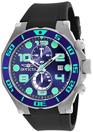 Brand Name INVICTA Model number 17813 Part Number 17813 Model Year 2017 Item Shape Round Case material Stainless Steel Band Material Plastic Band length Mens Long Band width 30 millimetres Band Color Black Dial color Blue Bezel material Stainless Steel Special features Chronograph, Luminous, Measures seconds Item weight 160 Grams Movement Quartz