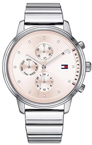 Product DescriptionModern and sporty, this 38 mm multi-function design is one to watch. The minimal monochromatic dials and timeless mono-toned or color-blocked bracelets and strap make a fresh pairing. The dial features a checkered flag-inspired pattern on the minute track, while red, white and blue details complete the Tommy signature style. Water resistant to 3 ATM/30 meters.Box ContainsWatch, Presentation box, Watch Cushion, Guarantee