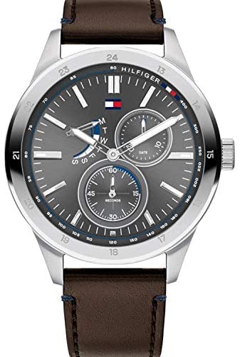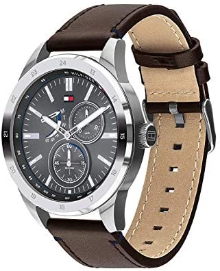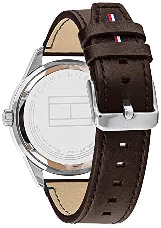 Brand Name Tommy Hilfiger Model number 1791637 Part Number 1791637 Item Shape Round Case material Stainless Steel Band Material Leather Band width 21 millimetres Band Color Brown Dial color Grey Bezel material Stainless Steel Item weight 72 Grams Movement Quartz