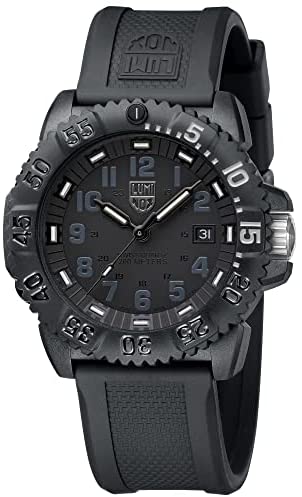 The 3051.GO.NSF military watch was designed in collaboration with the Navy SEAL Foundation (NSF) and bears their logo on the case back.In terms of color tone-on-tone, the monochrome Luminox logo on the dial catches the eye. The design of the Navy SEAL series impresses with its distinctive "turtle shape".Thanks to its protected crown and diver's bezel, it is also water-resistant up to 200 meters. The tried-and-tested Luminox lighting system also ensures that the time can be read easily in every situation, and without any additional energy supply.SPECIFICATIONSOrigin: Swiss Made Always Visible: Permanent glow for up to 25 years Case diameter: 44 mm Function: time / date Water resistance (meters, feet, ATM): 200/660/20 Movement Swiss Quartz Housing material : CARBONOX Bezel: unidirectional Caseback: 316L stainless steel screwed on Glass: Hardened mineral glass (550-650 Vickers) Crown: double seal and crown protection Strap: rubber Strap width: 23 mm Height: 14mm Weight: 64 g