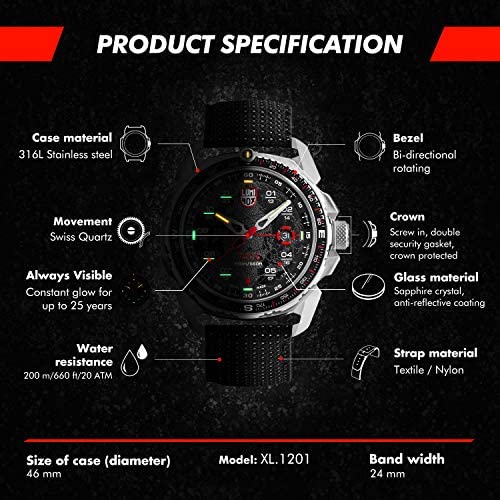 Specifications of Luminox ICE-SAR Arctic, Outdoor Adventure Watch XL.1201, 46 MM.