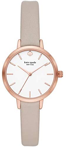 kate spade's metro 30mm watch features a white glossy dial with rose gold-tone stick indexes, three-hand movement and grey leather strap.