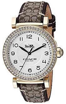 Please Note: COACH™ items cannot be shipped to military addresses (APO or FPO) and addresses in Hawaii, the Virgin Islands, Guam or any other locations outside of the continental US. The COACH® Madison watch is adorned with Swarovski® crystals for much added appeal! Stainless steel case with a fold-over, double-button closure. Three-hand analog display with quartz movement. Round face with hour markers and brand detail. Water resistant to 100 feet. Case included. Imported. Measurements: Case Height: 32 mm Case Width: 32 mm Case Depth: 8 mm Band Width: 16 mm Band Circumference/Length: 7 1⁄4 in Weight: 3 oz