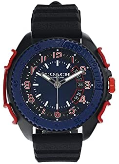 Brand Name Coach Model number 14602449 Part Number 14602449 Case diameter 45 millimetres Case Thickness 10 millimetres Band Material Silicone Band width 18 millimetres Dial color Blue Item weight 250 Grams