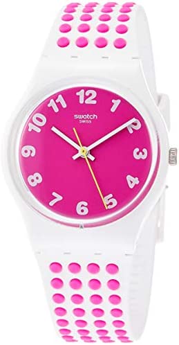 Brand Name Swatch Model number GW190 Part Number GW190 Model Year 2018 Item Shape Round Dial window material type Glass Clasp Buckle Case diameter 34 millimetres Case Thickness 4.5 millimetres Band Material Rubber Band width 18 millimetres Band Color Multicolour Dial color Pink Item weight 20 Grams Movement Kvartz Display Type Analog
