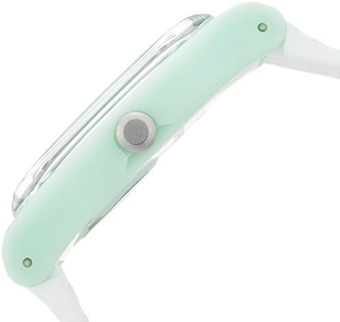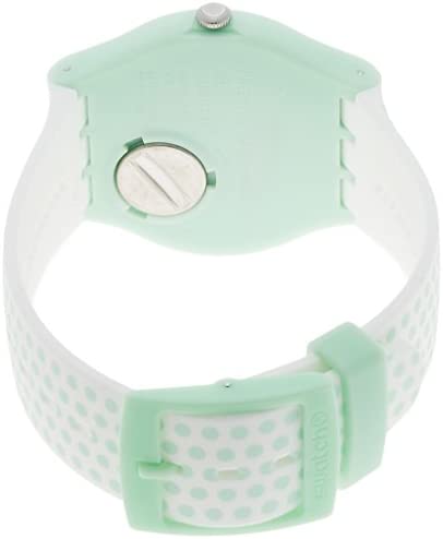 This unisex Swatch watch is made from plastic/resin and is powered by a quartz movement. It is fitted with a white rubber strap and has a green dial.