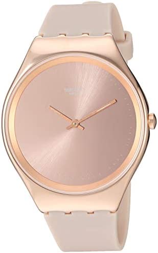 Raise a glass for SKINROSEE!!Stainless steel case.Matte silicone strap with adjustable buckle closure. Round face.Three-hand analog display with quartz movement.Rosy and rose gold-colored, the shiny sun-brushed dial features matching hands and hour markers with Swatch® detailing. Water resistant up to 100 feet. Display case included.Imported.Measurements: Case Height: 31 3⁄10 mm Case Width: 32 mm Case Depth: 4⁄5 mm Band Width: 11 mm Band Circumference/Length: 10 in Weight: 1.4 oz