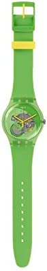 Brand Name Swatch Model number SUOG110 Part Number SUOG110 Model Year 2015 Item Shape Round Dial window material type Mineral Glass Clasp Buckle Case material Plastic Case diameter 41 millimetres Case Thickness 10 millimetres Band Material Rubber Band width 19 millimetres Band Color Green Dial color Green Special features Waterproof Item weight 31 Grams Movement Quartz Display Type Analog