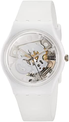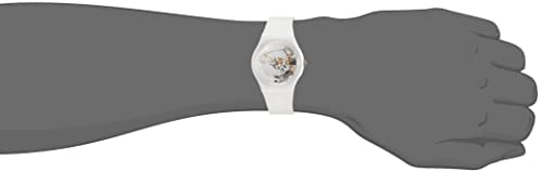 White Skeleton dial enhanced by silver-tone hands. White bio-ceramic case with a white bio-sourced band. Quartz movement. 30 meters / 100 feet water resistance. Fixed bezel. Plexiglass crystal. Solid caseback. Tang clasp. Pull / Push crown. Case size 34 mm x 8.75 mm. Band 18 mm x long. Swatch SO31W102 Spot Time White Watch.