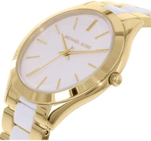 Reloj Michael Kors Runway MK4295 Mujer Acer Dorado. Este Reloj Michael Kors MK4295, orientado para la Mujer, es de Acero Dorado, con la caja Circular. El Armis es de Acero y policarbonato, de color Dorado y blanco. El bisel es Dorado, y el cristal Mineral. El movimiento es de Cuarzo, y el display Analógico. Puede Sumergirse hasta 100 Metros. De estilo Clásico, es ideal para Cumpleaños. Diámetro: 40 mm