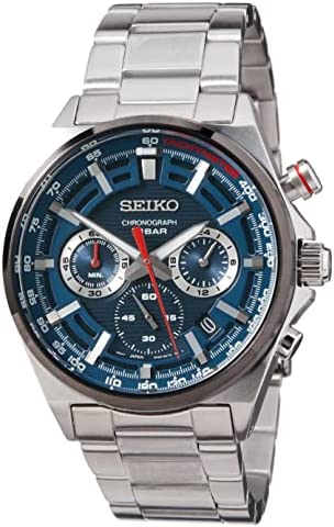 Seiko men's chronograph watch with blue dial and silver bracelet, SSB407P1