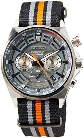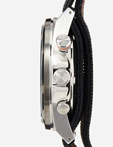 Stainless steel case: The case of the watch is made of robust stainless steel, a titanium carbide coating gives it its black colour -- Flexible textile strap: The high-quality textile bracelet ensures maximum wearing comfort on the wrist , the strap length can be easily adapted to the individual wrist circumference -- Scratch-resistant hardlex glass: The specially hardened hardlex mineral glass is much more resistant to scratches and impacts than conventional mineral glass -- Waterproof wristwatch: The watch is waterproof up to 10 bar, that is at a depth of up to 100 m, it can therefore easily withstand accidental splashes of water when washing hands, rain or sweat -- 41.0 mm x 12.0 mm -- Environment friendly luminous coating: Seiko's specially developed, environment friendly luminescent coating, lumibrite improves the readability of the dial in the dark without pressing a button