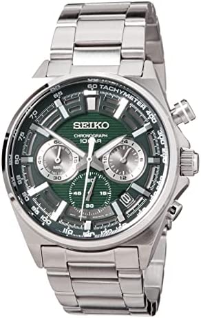 Seiko men's chronograph watch with green dial and silver bracelet, SSB405P1