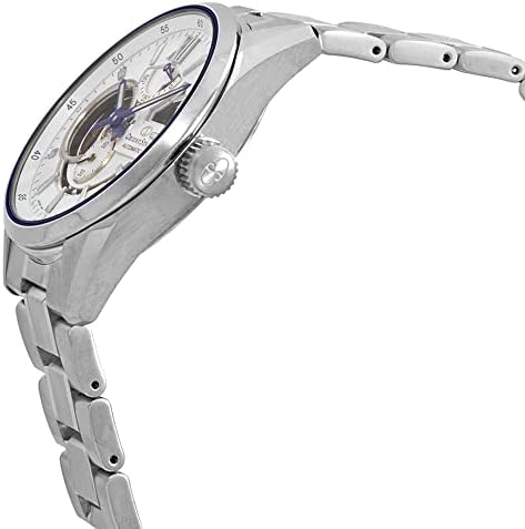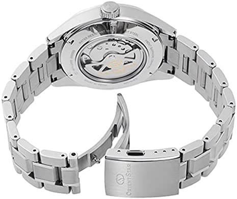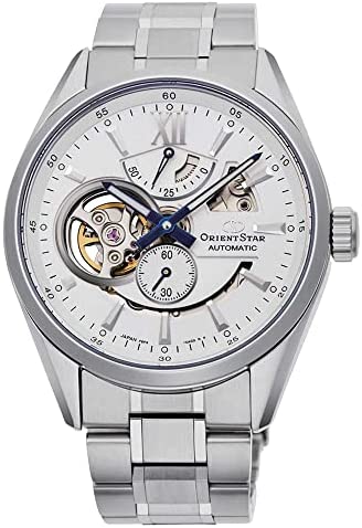 White (Open Heart) dial enhanced by blue pencil-style shape hands. Silver-tone stainless steel case with a silver-tone stainless steel band. Automatic movement. 100 meters / 330 feet water resistance. Fixed bezel. Scratch Resistant Sapphire crystal. Transparent caseback. Deployment with Push Button Release clasp. Pull / Push crown. Case size 41 mm x 12 mm. Band 21 mm x long. Orient RE-AV0113S00B Orient Star Watch.
