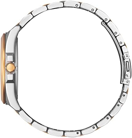 This men’s watch from Citizen is an update on a classic that never goes out of style. The three-hand watch features a rose gold two-tone stainless steel case and bracelet, and a grey dial with a subtle pattern. It is sustainably powered by light with Citizen Eco-Drive technology, so it will never need a battery. Bold, elegant, and timeless, this classic watch is a must-have for every collection.