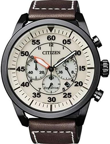 - Marca: Reloj Citizen - Sexo: Hombre - Correa en piel, color marron - Caja de acero en color negro - Esfera color crema - Maquinaria: Cuarzo - Funciones: multifunción - Resistente al agua: 10 atm presión - Dimensiones de caja: 44 mlm - Eco-Drive (Carga de luz infinita), reserva de marcha de 240 días - Funciones: Cronógrafo 60 minutos a 1/5 de segundo. - Calendario. - Garantía 2 años