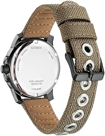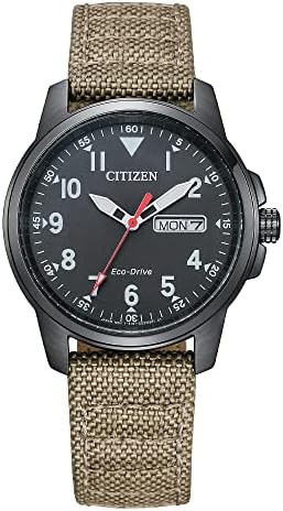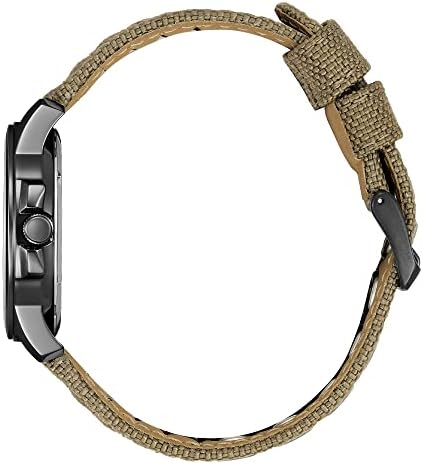 For A Rugged Look With A Comfortable Fit, This Military-Inspired Timepiece Fits The Bill. With A Day-Date Indicator, Luminous Hands, 37Mm Case, And 50 Metres Water Resistant. The Black Dial Provides A Backdrop For Simple Arabic Numerals, Housed In A Black Ion Plated Stainless Steel Case Along With A Woven Beige Strap With Patterned Stitching And A Buckle Clasp.