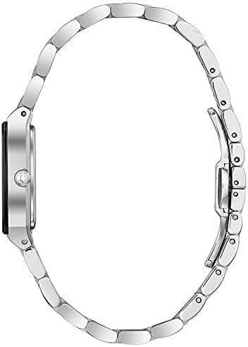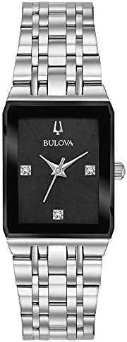 Watch Sizing Guide Never skip a beat wearing the smooth sleek style of the Bulova® Quadra watch. Tank-style stainless steel case with edge-to-edge black faceted mineralized crystal. Stainless steel seven-link bracelet. Deployment clasp with double push-button closure. Three-hand analog display with quartz movement. Black dial face features three set diamonds, silver-tone hands, and brand name. Water resistant up to 3 ATM/30 meters. Presentation box included. Imported. Your Bulova watch is covered by Bulova's 3-Year Global Warranty. Measurements: Case Height: 1⁄1 mm Case Width: 13⁄16 mm Case Depth: 2⁄7 mm Band Width: 5⁄9 mm Band Circumference/Length: 8 1⁄4 in Weight: 2.6 oz