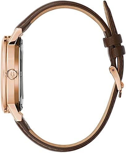 Rose gold-tone stainless steel case with open aperture black dial with exhibition case back offering a glimpse of the 21-jewel automatic heartbeat movement with a 42-hour power reserve. Dial features rose gold-tone hands and markers and a sub sweep dial. Brown leather strap. Flat mineral crystal. Water resistance to 30 meters.