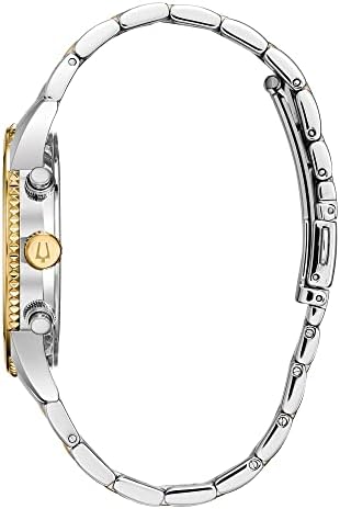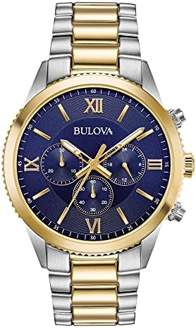 The Bulova Classic Quartz-Powered Chronograph Is Styled With A Gold Tone Stainless Steel Screw-Back Case, Blue Six-Hand Dial With Flat Mineral Crystal, Two Tone Stainless Steel Bracelet With Short Fold-Over Pusher Closure And Water Resistant To 30 Metres.
