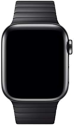 Crafted from the same 316L stainless steel alloy as the case, the Link Bracelet has more than 100 components. -- The machining process is so precise, it takes nearly nine hours to cut the links for a single strap. -- The custom butterfly closure folds neatly within the bracelet. -- And several links feature a simple release button, so you can add and remove links without any special tools. -- 38mm: Band fits 135–195mm wrists. -- You can match this band with any Apple Watch Series 3 case of the same size. -- It also works with all other versions of Apple Watch, including Apple Watch Series 5 and Apple Watch Series 4. -- The 38mm band works with the 40mm case of Apple Watch Series 4 and 5.