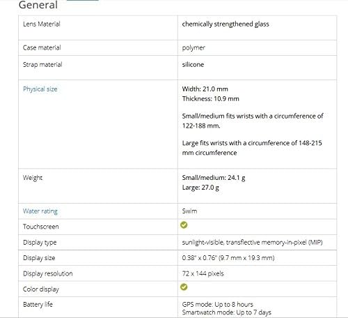 Specifications of Garmin vívosport, Fitness/Activity Tracker with GPS and Heart Rate Monitoring, Slate