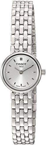Stainless steel case with a stainless steel bracelet. Fixed stainless steel bezel. Silver dial with silver-tone hands and index hour markers. Dial Type: Analog. Quartz movement. Scratch resistant sapphire crystal. Pull / push crown. Solid case back. Case diameter: 19.50 mm. Case thickness: 5 mm. Round case shape. Deployment with push button clasp. Water resistant at 30 meters / 100 feet. Functions: hour, minute. Dress watch style. Tissot Lovely Mother of Pearl Dial Stainless Steel Ladies Watch T0580091103100