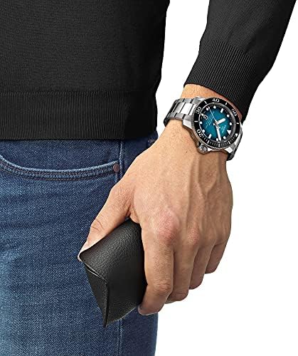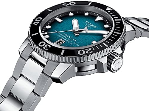 Watch Tissot Automatic Seastar 2000 Professional helium valve Powermatic 80 black and light blue T120.607.11.041.00. Watch with 316L steel case with a diameter of 46 mm and a thickness of 15.8 mm. Black ceramic bezel satin finish. Light blue gradient dial, scratch-resistant domed sapphire crystal with anti-reflective treatment. Screw-in crown and caseback, with exposed caseback. Powermatic 80 automatic movement with power reserve up to 80 hours. Gauge 11 1/2'" with a diameter of 25.6 mm. Patented Nivachron balance spring. Silver color steel bracelet with Deployante clasp. Waterproof up to 600 meters/2000 feet, with helium valve and ISO 6425 certification for professional divers.