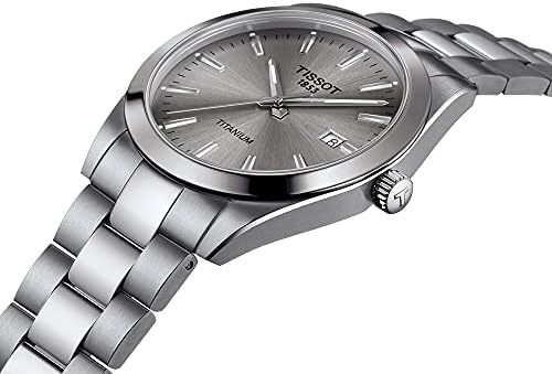 Men's watch only time Tissot Gentleman Titanium grey T127.410.44.081.00. Watch with titanium case with a diameter of 40 mm and a thickness of 8.5 mm, with exposed caseback. Grey HMSD dial with Roman indexes and date display. Anti-scratch domed sapphire crystal with anti-reflective treatment. EOL quartz movement caliber 11 1/2''' diameter 25.6 mm. Titanium silver bracelet, Deployante closure. Waterproof watch up to 10 bar.