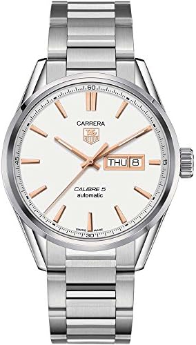 This classic design from Tag Heuer has been crafted from stainless steel. The silver dial uses rose gold baton hour markers and a day/date window is positioned at 3 o'clock. This handsome timepiece will make the perfect gift for your loved one. : - TAG HEUER Carrera Collection - Case Width: Approx 41mm - Water Resistance: 100m - Automatic Movement