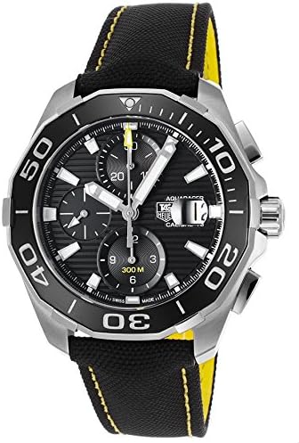 Brand Name TAG Heuer Model number CAY211A.FC6361 Part Number CAY211A.FC6361 Item Shape Round Dial window material type Sapphire Crystal Clasp Deployment Clasp Case diameter 43 millimetres Band Material Cloth Band width 16 millimetres Band Color Black Dial color Black Bezel material Stainless Steel Special features Chronograph Movement Automatic Display Type Analog