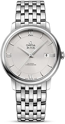 Silver dial. Silver-tone stainless steel case with a silver-tone stainless steel band. Automatic movement. 30 meters / 100 feet water resistance. Fixed bezel. Fold Over clasp. Case size 39.5 mm x 10 mm. Omega 424.10.40.20.02.003 De Ville Prestige Watch.