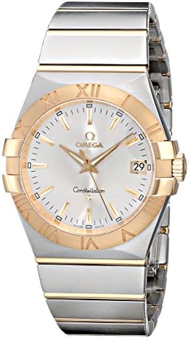Stainless steel and gold case with a stainless steel and yellow gold brushed bracelet. Fixed bezel with engraved Roman numeral hour markers. Silver dial with luminous gold-tone hands and stick hour markers. Minute markers around the outer rim. Date displays at the 3 o'clock position. Quartz movement. Scratch resistant anti-reflective sapphire crystal. Solid case back. Case diameter: 35 mm. Push button fold over clasp. Water resistant at 100 meters/ 330 feet. Omega Constellation 09 Ladies Watch 12320356002002.