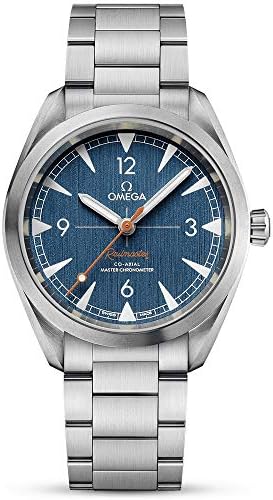 Blue dial. Silver-tone stainless steel case with a silver-tone stainless steel band. Automatic movement. 150 meters / 500 feet water resistance. Fixed bezel. Fold Over with Push Button Release clasp. Case size 40 mm. Omega 220.10.40.20.03.001 Seamaster Railmaster Watch.