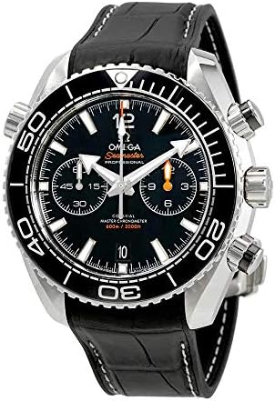 Black dial. Silver-tone stainless steel case with a black rubber with a black (alligator ) leather top band. Automatic movement. 600 meters / 2000 feet water resistance. Uni-directional Rotating bezel. Deployment with Push Button Release clasp. Case size 45.5 mm x 18.87 mm. Omega 215.33.46.51.01.001 Seamaster Planet Ocean Watch.