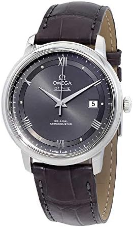 Grey dial. Silver-tone stainless steel case with a grey (alligator) leather band. Automatic movement. 30 meters / 100 feet water resistance. Fixed bezel. Fold Over clasp. Case size 39.5 mm x 9.5 mm. Omega 424.13.40.20.06.001 De Ville Watch.