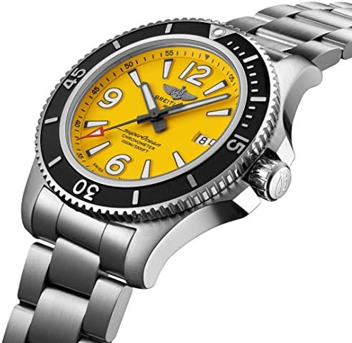Brand Name Breitling Model number A17367021I1A1 Part Number A17367021I1A1 Item Shape Round Case material Stainless Steel Case diameter 44 millimetres Case Thickness 14.20 Band width 20 millimetres Band Color Silver Dial color Yellow Special features Waterproof Display Type Analog