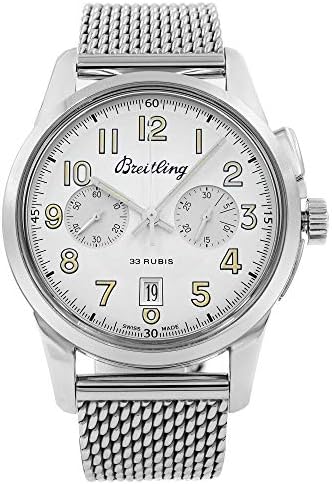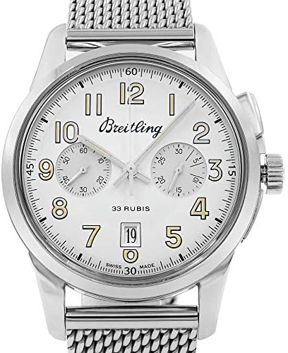 Breitling Transocean Silver Dial Steel Manual Wind Mens Watch model number AB141112/G799-154A with caliber 14 mechanical hand wind movement -- Stainless steel Ocean Classic band and stainless steel fold over clasp for safety -- Stainless steel fixed bezel is mounted on a 43mm diameter 15mm thick stainless steel round case -- Mercury silver dial has features including a 60 second scale a 30 second subdial and a date window at 9 O’clock position; the hour markers are in a Arabic style -- Scratch resistant sapphire crystal