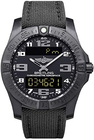 - WITH MANUFACTURER SERIAL NUMBERS - Volcano Black Dial- Perpetual Day & Date Calendar- Chronograph Feature- GMT 2nd Time Zone Feature- Alarm Feature- Countdown Timer- Backlight Feature- End of Life Indicator- Battery Operated Quartz Chronometer Movement- Breitling Caliber 79- Electronic & Analog LCD Digital Display- Guaranteed Authentic- Certificate of Authenticity- Manufacturer Box & Manual- Brushed Black Titanium Case- Anthracite Canvas Strap- Scratch Resistant Glareproof Sapphire Crystal- 100 Meters / 330 Feet Water Resistant- 43mm = 1 5/8" Case, 7" Adjustable Strap- Case Weight: 46.70g- Case Thickness: 10.80mm- Inlet Size: 22mm- Uni-Directional Rotating Bezel- Luminescent Hands & Hour Markers- Screw Down Case Back- Stainless Steel Tang Buckle Also Known As Model # V7936310 / V7936310 BD60 109W
