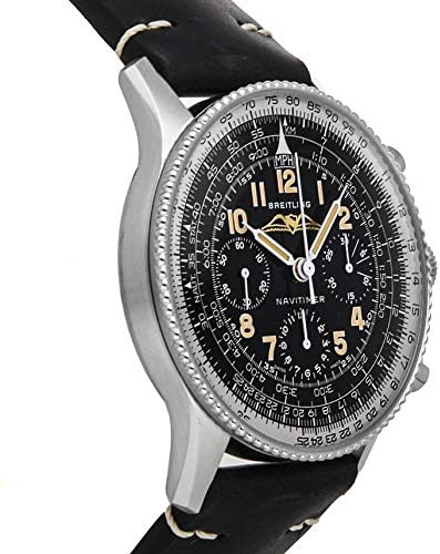 Breitling Navitimer Ref. 806 1959 Re-Edition Limited Edition (AB0910371B1X1) manual-wind watch features a 41mm stainless steel case surrounding a black dial on a black leather strap with a stainless steel tang buckle. Functions include hours minutes small seconds date slide rule and chronograph. This is a Limited Edition piece of 1959! Majority of Founded in 1884 by Leon Breitling the company was conceptualized as a manufacturer of counters and chronographs for industrial and scientific purposes. In less than a decade it became apparent that Breitling had become a “hit” because of its innovation design and functionality. Some of the company’s most notable clients include the American armed forces and major international airlines.